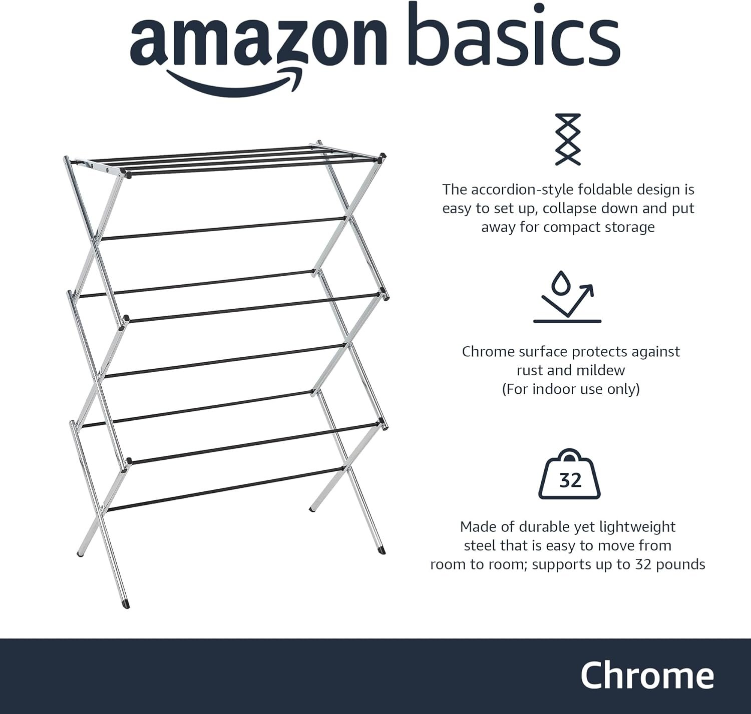 Yes, the chrome finish provides strong protection, making it a great choice if you need a rust resistant clothes rack. - Is the Amazon Basics Foldable Portable Metal Clothes Drying Rack review suitable for small apartments?